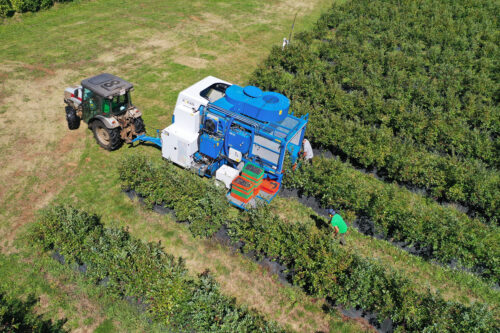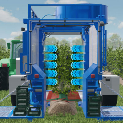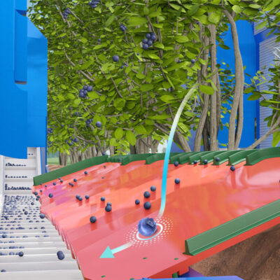 De este modo, la planta es sacudida sin contacto físico, evitando posibles daños a la fruta y las plantas.